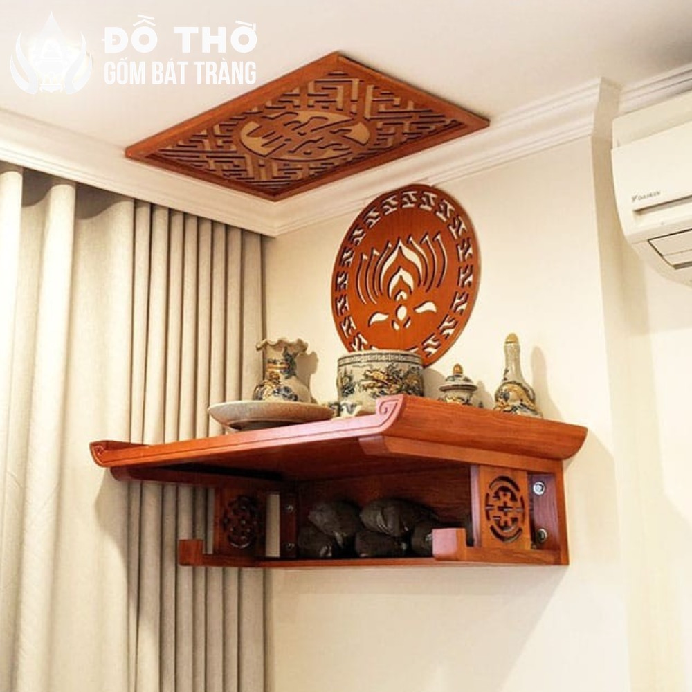 • Ưu tiên bộ tinh gọn, kích thước vừa vặn: Với ban thờ treo tường hoặc tủ thờ nhỏ, hãy chọn bộ đồ thờ có số lượng món cơ bản, tránh các chi tiết rườm rà gây chật chội. Về trọng lượng, đồ thờ gốm sứ Bát Tràng nhẹ hơn đáng kể so với đồ thờ bằng đồng, là lựa chọn an toàn tuyệt đối cho kết cấu tường chung cư.